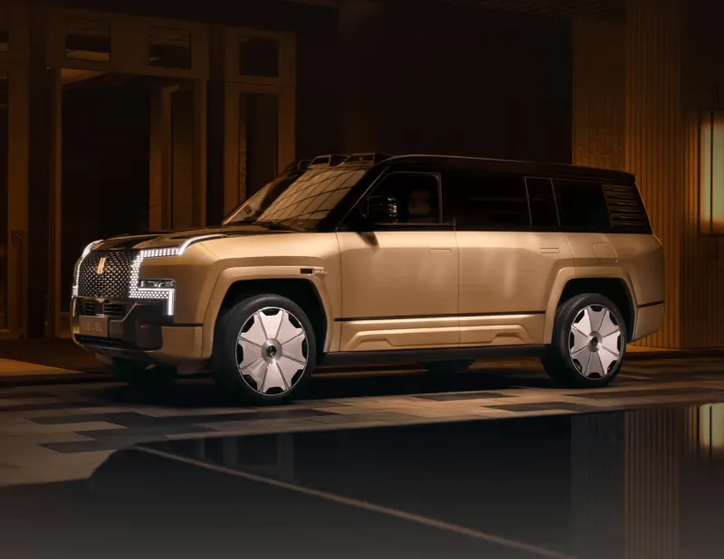 新车提供小黑金(曜石黑配日珥金)和大黑金(曜石黑配日曜金)两款双拼配色,以及曜石黑、萤石白、龙石绿配色,尺寸为 5400×2049×1921mm、轴距 3250mm,以“黑漆描金”为灵感的车身漆面,采用 6C3B 车漆工艺 + 纳米级陶瓷清漆。