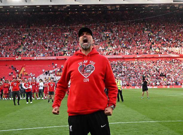冥冥中自有天意,2018-19赛季和2021-22赛季利物浦均以1分之差遗憾无缘英超桂冠,两个赛季最后一轮均是主场迎战狼队。而在告别克洛普时代的最后一站中,利物浦又是主场面对狼队。即使此刻利物浦已经不再有冠军可去争夺,但在这样一个充满感动的晴日午后,向克洛普告别的重要时刻,安菲尔德早已做好准备。